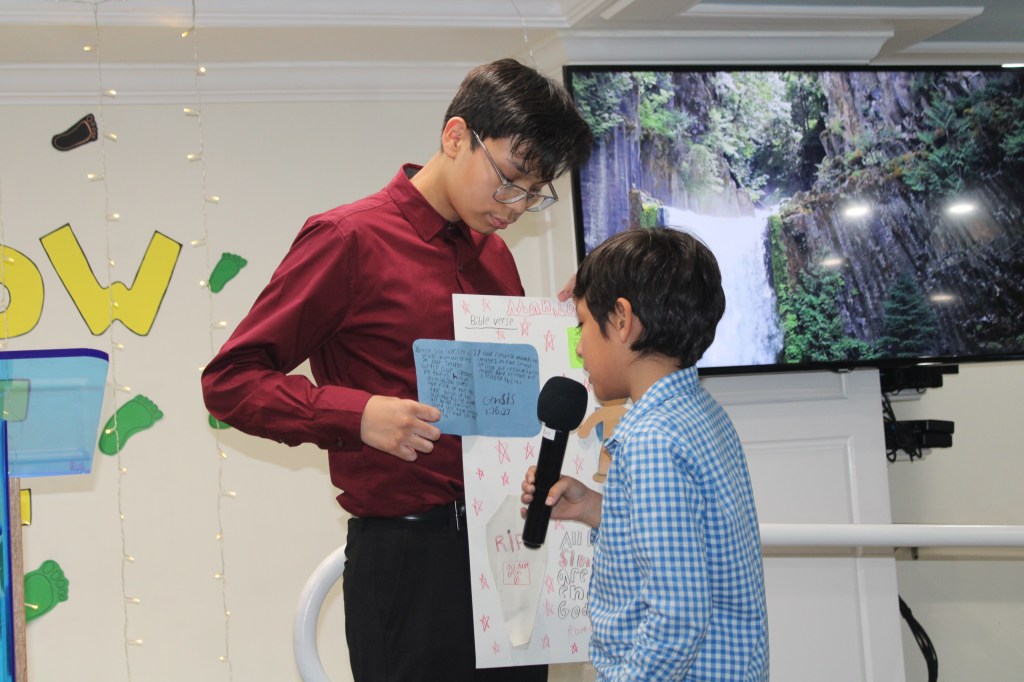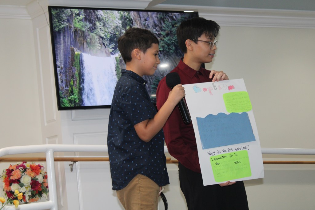 En Mayo 6, 2023 cada niño del ministerio infantil presento un proyectó sobre un tema de la doctrina de la Iglesia basado “En esto creemos”.
